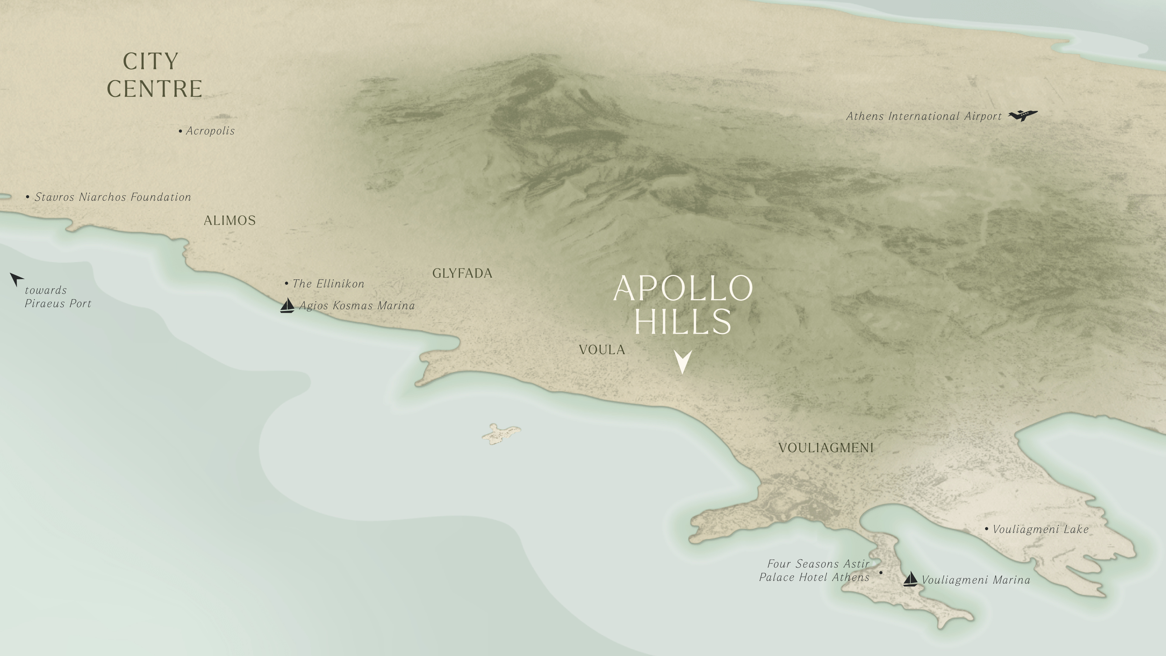 Apollo Hills is located in the cosmopolitan Athens Riviera, a richly authentic area that’s both refined yet relaxed. With easy connections to the city centre and just a 25-minute drive from Athens International Airport. Piraeus Port offers ferry connections to Greece’s sun-drenched island destinations.