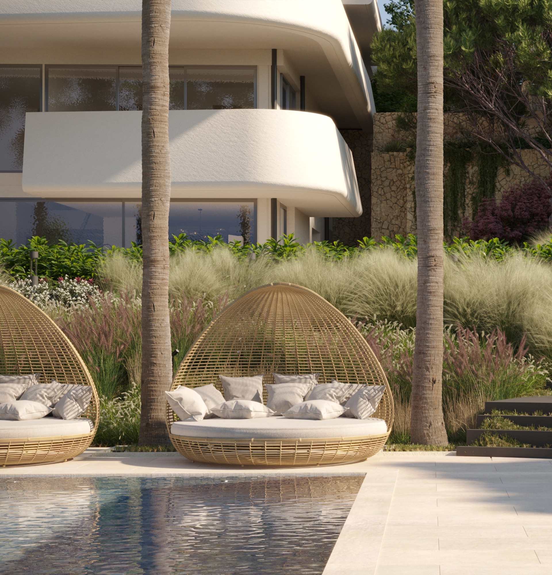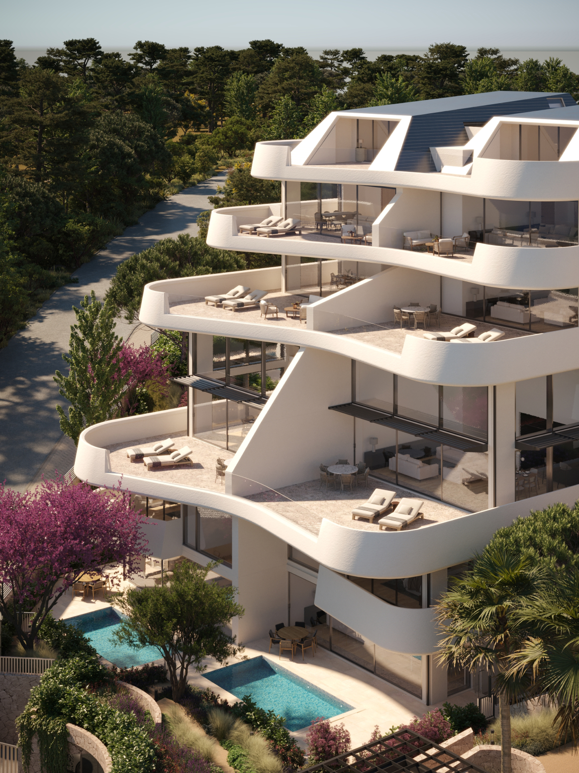 The warmly minimalist design by internationally acclaimed Greek architects Porphyrios Associates combines private spaces for retreat with open-plan areas for family and entertaining. The residences offer high-quality materials, thoughtful layouts and beautiful views of the surrounding gardens and the sea.